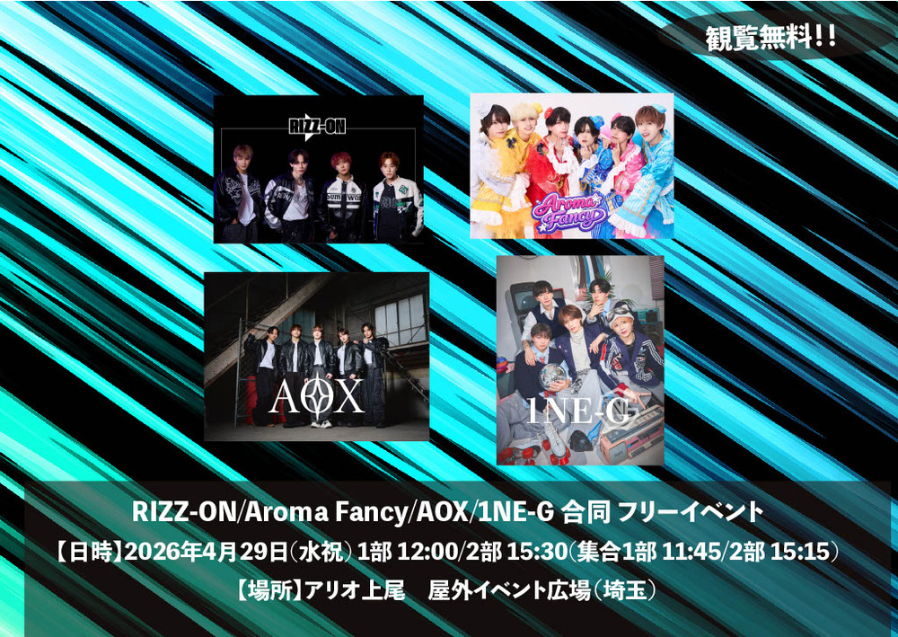 【RIZZ-ON、Aroma Fancy、AOX、1NE-G 合同フリーイベント】@アリオ上尾 屋外広場出演決定!!
