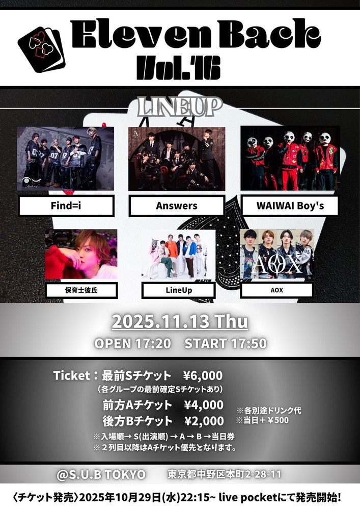 2025.11.13『Eleven Back』Vol.16@S.U.B TOKYO出演決定!!